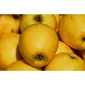 La mela gialla per eccellenza, forma allungata, croccante e succosa al morso, buccia finissima, raccolta dai nostri alberi nati da seme, grandi alti e vigorosi