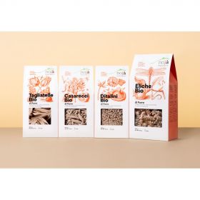 Box da 5, 25 Kg. di pasta di farro così suddivisa: 3 casarecci, 3 eliche, 3 ditalini, 3 tagliatelle