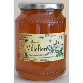 Il miele millefiori è uno dei mieli più conosciuti per i suoi benefici legati sia ai malanni invernali, visto la forte presenza di minerali e antiossidanti, che come dolcificante naturale. Questo miele è frutto di diverse varietà di fiori della macchia tipica siciliana, tra cui sulla, cardo, aneto e fioriture spontanee. Viene estratto a freddo e non è soggetto a pastorizzazione. Colore: giallo tendente al marrone Proprietà: ricco di minerali e antiossidanti, è un antibatterico naturale Sapore: delicato, dolce, poco intenso Consigli d'uso: dolcificante per infusi, tè e tisane. Ottimo con formaggi stagionati e/o leggermente piccanti.