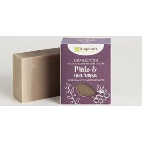 Olea Europaea Fruit Oil*, Cocos Nucifera Oil*, Aqua, Sodium Hydroxide, Prunus Amygdalus Dulcis Oil*, Myrtus Communis Oil, Rosmarinus Officinalis Leaf Oil*, Vitis Vinifera Peel Extract*, Rubia Tinctorum Root Extract, Sodium Phytate, Alkanna Tinctoria Root Extract, Glycerin, Citric Acid, Linalool, Geraniol, Eugenol. (*ingredienti da agricoltura biologica 95% del totale esclusa acqua e soda)