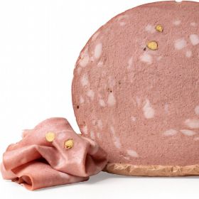 Mortadella di Capitelli, disponibile affettata in porzione da 100 grammi oppure in tranci da 500 g, 2 Kg, 10 Kg.
