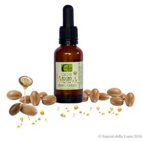 L’olio di argan si ottiene grazie ai frutti prodotti dall’albero d’argan, detto anche albero della vita. La sua diffusione interessa prevalentemente il Marocco ed in particolare la zona pianeggiante. Possiede un elevato contenuto di sostanze antiossidanti come tocoferoli, vitamina E, acidi grassi e flavonoidi, i quali svolgono un azione sinergica evitando la formazione di radicali liberi. Proprietà e benefici dell'olio di Argan L’ olio di argan è uno dei più preziosi alleati per la cura della nostra bellezza, è utile per pelle di viso e corpo, capelli ed unghie. Ha proprietà elasticizzanti, in quanto una volta applicato sulla pelle è in grado di raggiungerne gli strati più profondi che beneficiano della presenza dei polifenoli, che contribuiscono a rendere la pelle più elastica e resistente. Consigliato per l’idratazione di viso e del corpo, ridà morbidezza e vigore alla pelle, in particolare se secca o screpolata. In caso di capelli deboli e sfibrati un impacco specifico utilizzando dell’olio d’argan puro, ridonerà lucentezza e vigore.