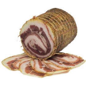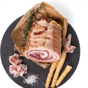 La Pancetta Arrotolata è un gustoso salume prodotto con il sottopancia dei nostri maiali. La pancetta dei maiali, appunto, viene privata della cotenna, e viene salata e conciata con gli aromi e successivamente arrotolata e legata ben stretta con uno spago dal diametro grosso. Dopodichè resta a stagionare 2-3 mesi circa in celle frigorifero a temperatura ed umidità controllate. Tenera, gustosa e morbidissima, la Pancetta Arrotolata è l'ideale da abbinare con del pane di farina di grano duro caldo e/o tostato. Il calore renderà il grasso più scioglievole, sprigionandone tutti i suoi profumi delicati ed allo stesso tempo speziati. Una vera goduria per lo spirito e soprattutto per la gola. Sarà un vero successo.Ingredienti
