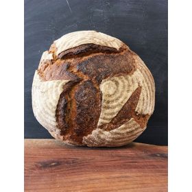 acqua, lievito madre (20% – varietà antiche di grano tenero, acqua), Farro Monococco macinato a pietra tipo “2” Filiera Anticamente 2017 (15%), semola di grano duro Senatore Cappelli macinato a pietra (15%), varietà antiche di grano tenero macinato a pietra tipo “2” Filiera Anticamente 2018 (15%), sale marino naturale.