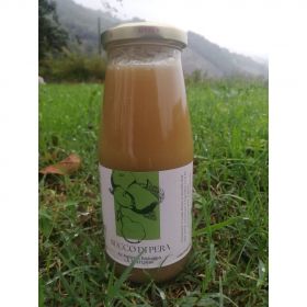 Succo e polpa di pera, ottenuto dalla lavorazione di albicocche mature raccolte a mano. Senza zuccheri aggiunti, utilizziamo il nostro succo di uva biologica per dolcificare naturalmente il succo e renderlo ancora più gradevole. Tutte le fasi della lavorazione sono eseguite a mano fino al confezionamento del prodotto finito, questo fa sì che il succo di frutta Biofavole sia un prodotto artigianale unico.Il colore del succo 100% frutta è il colore naturale della frutta, alla quale non è stato aggiunto alcun ingrediente volutamente per mantenere la sua naturalezza.