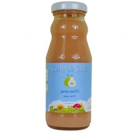 Purea di pera ottenuta dalla lavorazione di frutta matura e raccolta a mano, cotta e omogeneizzata. Lavaggio, mondatura e cernita della materia prima sono eseguiti a mano dagli operatori, così come anche il confezionamento del prodotto finito, questo fa sì che la purea sia un prodotto artigianale. Il prodotto ottenuto dalla lavorazione viene confezionato in contenitori sterili e pastorizzato. Il colore del prodotto finito è il colore naturale della frutta che ha subito un processo di cottura, alla quale non è stato aggiunto alcun ingrediente per mantenere la sua naturalezza. Può essere consumata al cucchiaio come sostituto della frutta o abbinata a yogurt e formaggi per la prima colazione.100% frutta, senza zuccheri aggiunti.