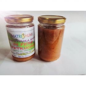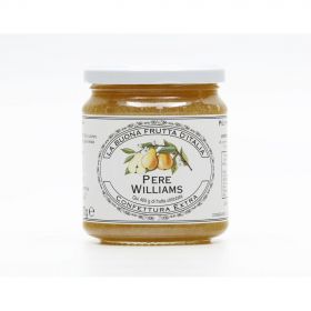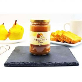 Confettura ottenuta con pere fresche di stagione, raccolte a giusta maturazione, lavorate artigianalmente e cotte in depressione a bassa temperatura. La varietà utilizzata è la "Coscia" ideale nella preparazione di confetture, grazie alla sua polpa consistente e al suo sapore intenso.