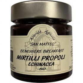 Mirtilli freschi, mosto d'uva concentrato solido, succo di limoni freschi, propoli, echinacea