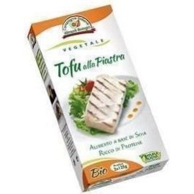 Recucinato e condito con salsa di soia, si consuma senza altre aggiunte o come ingrediente in sostituzione al formaggio. Può essere usato in tutte quelle ricette per hamburger di carni. Consigliamo di tagliare sempre in 2 fette il Tofu alla Piastra, per meglio insaporirlo nelle varie preparazioni, poi accompagnarlo con verdure cotte o crude. Peso: 250g Ingredienti:Fagioli di soja* 58%, acqua, olio di girasole*, coagulante: nigari (cloruro di magnesio)*Ingredienti da agricoltura biologica.