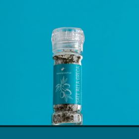 Ingredienti: Basilico, Aglio, Cipolla, Origano, Sale marino grosso, Aneto, Pepe. Vuoi portare nella tua cucina il sole della Grecia tutto l'anno per insaporire i tuoi piatti in maniera 100% naturale? Questo condimento fa al caso tuo! Perfetto per insaporire carne, pesce, verdure ed insalate! Aggiungendolo a Yogurt ed un Cetriolo otterrete un fantastico Tzatziki!