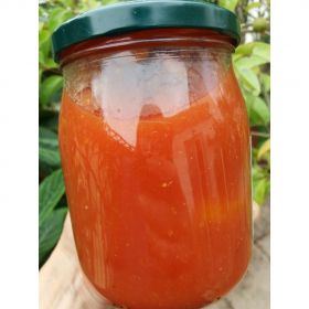 Non una semplice passata ma una vera salsa di pomodoro, preparata come da tradizione montaganese, con soli pomodori di Montagano scelti a mano e lavorati in modo artigianale.Otteniamo così una salsa densa e dolce, ricca di antiossidanti naturali e senza altri ingredienti oltre al pomodoro.