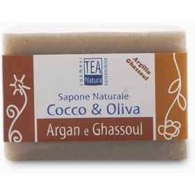 Sapone naturale all'olio di cocco e oliva con olio essenziale di legno di cedro arricchito con olio di argan e argilla ghassoul. Proprietà assorbenti, emollienti, nutritive e leviganti