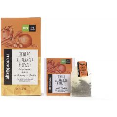 Semplicemente delizioso, questo tè nero si fonde perfettamente con scorzette d'arancia, zenzero, cannella, cardamomo, chiodi di garofano, noce moscata e pepe nero. È così che si ottiene un sapore intensamente persistente, con note autentiche di agrumi e spezie. Viene prodotto in India e si ottiene unicamente da coltivazioni biologiche, con il solo uso di concimi organici. La confezione contiene 20 filtri.