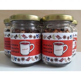 Miscela profumatissima per la preparazione del Vin Brulè (ma adatta anche per preparare un infuso speziato) con Cannella, Arancio scorze, Mela, Chiodi di garofano, Ginepro, Coriandolo, Anice stellato, Limone scorze, Cardamomo verde, Mirtilli, Zenzero e Pimento. bio.