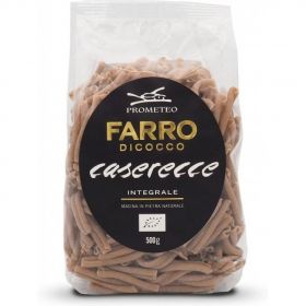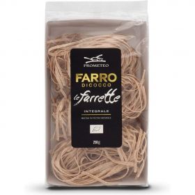 Questa pasta, altamente digeribile, viene prodotta utilizzando solo farro triticum dicoccum minuziosamente selezionato e coltivato dai nostri soci sulle colline umbre e marchigiane, con metodo rigorosamente biologico. Il farro è un cereale antico, ricco di fibre, proteine e principi nutritivi che si ritrovano anche nel prodotto finito grazie all'utilizzo di basse temperature con cui effettuiamo l'essiccazione, che avviene in tempi molto lunghi: circa 12 ore per la pasta lunga e circa 8 ore per la pasta corta. Con il farro produciamo due gamme di pasta Girolomoni®, una pasta bianca utilizzando 100% farina di farro ed una pasta integrale utilizzando 100% farina integrale di farro.