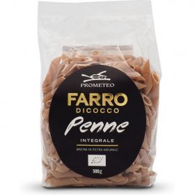 Sacchetto di pasta da 500g di penne integrali di farro.