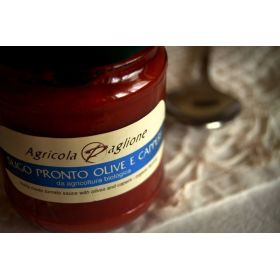 Passata di pomodoro 90%, olive verdi 5,5%, capperi 2%, olio extra vergine d’oliva, aglio, sale marino, peperoncino rosso.
