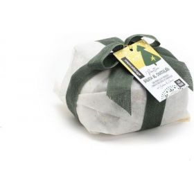 Il classico impasto del panettone lievitato naturalmente è preparato con ingredienti genuini come uova e burro e viene arricchito da squisite gocce di cioccolato e infine decorato con raffinata glassa al cacao e croccante granella di zucchero