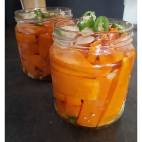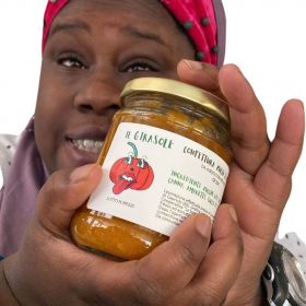Confettura composta per l'80% da frutta biologica, 20% zucchero di canna e succo di limone Senza conservanti e senza addensanti. Ottima sia per il dolce che il salato
