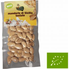 Mandorle sgusciate e tostale, ottime per un aperitivo, come antipasto o per uno snack veloce. Ingredienti: Mandorle tostate, sale, olio di girasole (tracce). Lavorazione: Le mandorle dopo essere state raccolte vengono sgusciate. Successivamente saltate con olio e sale. Peso netto: 100 grammi Origine mandorle: Sicilia (Italia)