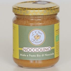 Compound tasty product with our best organic honey (85%) and pasta of Italian hazelnuts bio (15%). 250 gram jar.