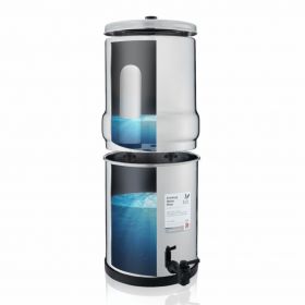 Composizione: Unità di trattamento dell’acqua Doulton a Gravità, equipaggiata di n° 2 cartuccie Doulton Ultra Sterasy e un rubinetto Caratteristiche: Materiale: Acciaio INOX; Dimensioni Doulton Decanter: Altezza 49 cm, Diametro 26 cm. Dimensioni apparecchio stoccato: Altezza 33 cm, Diametro 26 cm. Rendimento di filtrazione dell’acqua. 2 litri/ora (con 2 candele) Capacità del contenitore: 9 litri superiore, 9 litri inferiore. Manutenzione: Sostituzione della cartuccia Ultra Sterasyl® almeno 1 volta all'anno oppure ogni 3.000 litri di acqua filtrata (corrisponde a 4,0 litri di acqua al giorno). Pulizia della candela da effettuare se si riduce la portata dell'acqua. Certificazioni: NSF/ANSI standard 42 & 53 WRAS CSTB ISO 9002 Prodotto nel Regno Unito