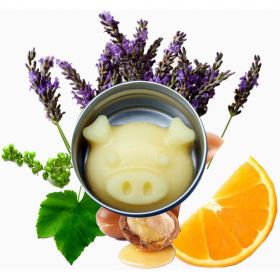 A solid cream shaped like a cute little pig, very delicate and fresh scent of italian lavender and sweet sicilian orange oil which will put you at peace with the world. It's packaged in a small aluminum box non-toxic with a screw cap. You can use it as a solid massage cream, body cream, for your hand and foot.