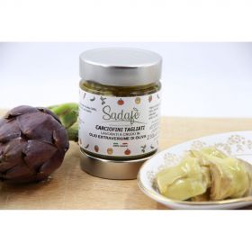 INGREDIENTI: Carciofini lavorati a crudo, Olio di girasole, Olio extravergine di oliva Sadafè "Il Casanova" (10%), Aceto di vino (solfiti), Sale. ORIGINE: Carciofini italiani