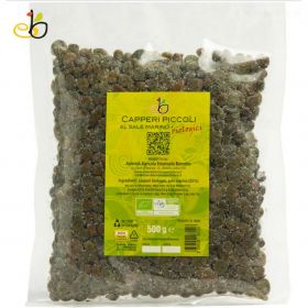 Capperi siciliani sotto sale confezionati in busta sottovuoto. Ingredienti: Capperi siciliani, sale. Lavorazione: I capperi vengono raccolti a mano e successivamente lavati. Infine vengono salati e confezionati. Peso netto: 100 grammi