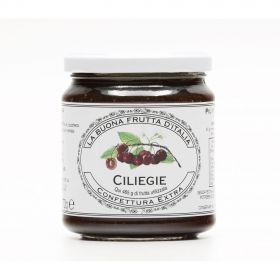 Confettura ottenuta con ciliegie fresche di stagione, raccolte a giusta maturazione, e trasformate a bassa temperatura. Il processo di denocciolatura avviene interamente a mano.
