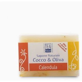 Natural soap of coconut oil and essential oil with tangerine oil, enriched with oils and marigold flowers. Moisturizer for dry skin and soothing