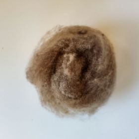 Lana di pecora nana di ouessant, tosata, lavata, cardata a mano. Nessun procedimento chimico. La lana presenta imperfezioni e residui vegetali perché la lavorazione è completamente manuale!