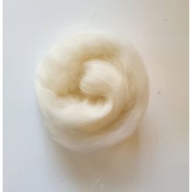 Lana di pecora selezionata, tosata, lavata, cardata e pettinata a mano. Fibra fine, morbida e di qualità superiore, quasi completamente assenti i residui vegetali e le imperfezioni.
