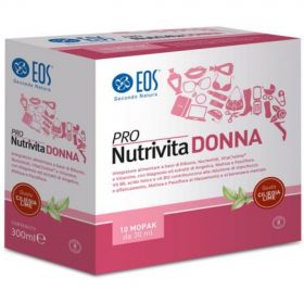 Acqua, Fruttosio, Mix Pro-Nutrivita Donna [L-pidolato di magnesio, glicerofosfato di magnesio, D-ribosio, miscela di nucleotidi 5’-monofosfato (guanosina 5’-monofosfato, inosina 5’-monofosfato, adenosina 5’-monofosfato), Melissa (Melissa officinalis L.) foglie e.s. da pianta fresca, Passiflora (Passiflora incarnata L.) parti aeree e.s. da pianta fresca, Angelica (Angelica sinensis (Oliv.) radice e.s., VitaCholine® (colina bitartrato)], Destrina ciclica altamente ramificata, Isomaltulosio*, Succo di melograno concentrato, Aroma, Acidificanti: acido fosforico, acido citrico; Acido L-ascorbico (vitamina C), Addensante: gomma di xanthan; Conservante: sorbato di potassio; SPECTRA tm**, Acetato di D-alfa-tocoferile (vitamina E), Nicotinamide (niacina), Calcio D-pantotenato (acido pantotenico), Piridossina cloridrato (vitamina B6), Riboflavina (vitamina B2), Tiamina cloridrato (vitamina B1), Edulcorante: sucralosio; Acido pteroil-monoglutammico (acido folico), D-Biotina (biotina), Cianocobalamina (vitamina B12). *L’isomaltulosio è una fonte di glucosio e di fruttosio. **Miscela di estratti e concentrati vegetali di: Caffè verde semi, Broccoli parti aeree, Tè verde (Camellia sinensis (L.) Kuntze) foglie, Cipolla bulbo, Mela frutto, Acerola frutto, Camu Camu frutto, Acacia giapponese (Styphnolobium japonicum (L.) Schott) fiori, Pomodoro frutto, Acai frutto, Curcuma rizoma, Aglio bulbo, Basilico foglie, Origano foglie, Cannella corteccia, Sambuco frutto, Carota radice, Mangostano frutto, Ribes nero frutto, Mirtillo frutto, Ciliegia frutto, Mora frutto, Aronia frutto, Lampone frutto, Spinacio foglie, Cavolo foglie, Mirtillo nero frutto, Cavolino di Bruxelles germogli commestibili.