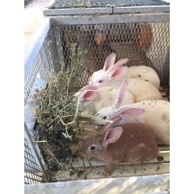 Coniglio allevato all'aperto. Alimentato con orzo e mais, fieno di erba medica e paglia di frumento per regolare e garantire una corretta attività della flora microbica intestinale dell'animale.