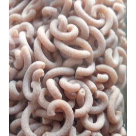 Pasta secca trafilata al bronzo. Impasto di farina e acqua e trafilatura al bronzo in trafile di diversi formati. Essiccazione lenta naturale a basse temperature in forni ventilati.