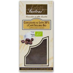 CAPPUCCINO GOLOSO. Il cioccolato al Latte Bio di Arlotti e Sartoni è un prodotto di Alta Qualità che esalta le piacevoli senzazioni del Cioccolato al Latte. Non troppo dolce per via di una percentuale di cacao (38%) molto più alta del generico Cioccolato al Latte, questa tavoletta Bio sarà in grado di donare agli appassionati del Cioccolato al Latte una bella senzazione di piacere intenso e sano.