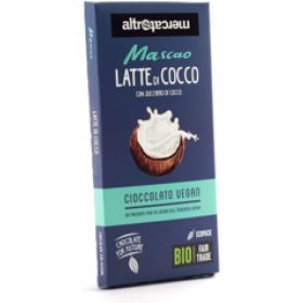 Mascao al cocco è una speciale tavoletta morbida e cremosa con un delicato profumo di cocco. Regala tutta la magia di un cioccolato al latte senza l'utilizzo del latte: un gusto pieno e avvolgente dolcificato solo con zucchero di cocco. Mascao al cocco è prodotto con cacao, zucchero e latte di cocco proventienti da produttori del Commercio Equo e Solidale.