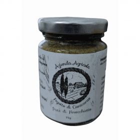 La crema di finocchietto selvatico è una prelibatezza tipica della cucina siciliana. Ottima per condire primi piatti, in particolar modo per la pasta con le sarde e primi a base di pesce. Ingredienti: Finocchietto selvatico, olio extra-vergine di oliva, olio di girasole, sale. Lavorazione: Dopo la raccolta, il finocchietto selvatico viene lavato accuratamente, tritato e conservato con olio extra-vergine di oliva e olio di girasole. La preparazione di ogni vasetto segue le ricette originali secondo la tradizione tipica siciliana. Peso netto: 180 grammi