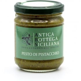 Il pesto di pistacchi è il condimento ideale per un piatto di pasta che esprima i sapori e i profumi della Sicilia. Ingredienti: Pistacchi siciliani, olio extra-vergine di oliva, olio di girasole, sale. Lavorazione: Il pistacchio intero siciliano viene tritato con un apposito macchinario, successivamente, dopo la mescolatura con l’olio extravergine, viene frullato e confezionato. Peso netto: 180 grammi