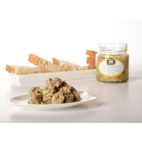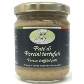 PATE OF MUSHROOMS is a concentrated cream made with porcini mushrooms and black truffle, and is an excellent condiment to use on any hot dish. It is recommended for use on sandwiches, bruschetta, pasta, omelettes and to accompany the meat. you can use as is or diluted with sour cream or mayonnaise. Ingredients: porcini mushrooms (Boletus edilus and related group), extra virgin olive oil, black summer truffle (Tuber aestivum Vitt.) (Min 5%), salt, flavor, bay leaf and cloves.