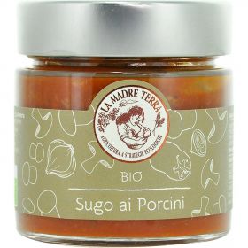 Passata di pomodori, cipolla, funghi porcini (Boletus Edulis), vino bianco, olio extra vergine d'oliva, sale marino, aglio.