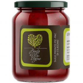 Il Sugo Pronto Pic Pac di Pomodoro ciliegino è una tipica ricetta Palermitana. Il pic-pac o “picchi-pacchi” è un condimento semplice a base di polpa di pomodoro, olio, aglio, cipolla e basilico fresco. L’ingrediente principale di questa ricetta è il pomodoro ciliegino, che è coltivato nella nostra azienda agricola sita nel cuore della Sicilia, tra i comuni di Alia e Valledolmo. Questo meraviglioso e profumatissimo condimento è usato per insaporire la tipica minestra estiva dei palermitani “la pasta cu i tenerumi” oppure per preparare un ottimo piatto di pasta esclusivamente con questo condimento, che già pronto da gustare e fatto con amore per voi da “Le Bontà di Villa Dafne”.