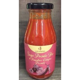 Seasoning ready to paste, just heat. It does not require cooking. After opening, store in frigo.Una biological sauce that enhances the authentic flavors of Sicily, excellent for seasoning a good dish of pasta. The sauce comes from the famous cherry tomatoes, a typical Sicilian excellence that embodies a certain balanced sweetness in his note more sour, accompanied by the scent of basil and extra virgin olive oil spicy flavor. It reveals a sauce suitable for every day, a fresh, genuine, natural and quality